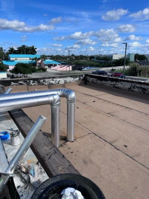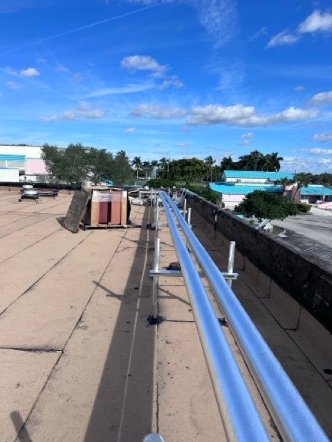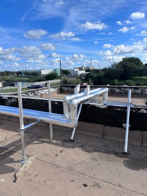 Our technicians performed all piping, and mechanical connections, ensuring the system was properly sealed and fully operational. The custom-fabricated curbs, stands, lineset jackets was designed to withstand Florida’s outdoor conditions while maintaining optimal airflow and equipment protection.